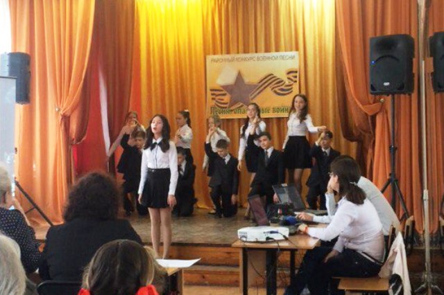 Обучающиеся 6Б, 8В и 11А классов приняли участие в районном конкурсе военной песни "Песни, опалённые войной".